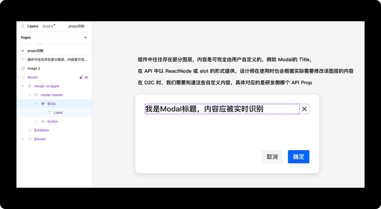 在解决了如何将 Figma Component 转换成 React Component 后,我们仍面临一个问题:如何实现组件自定义内容的识别?